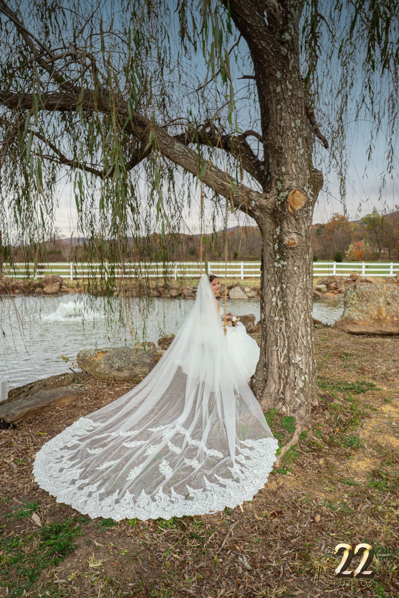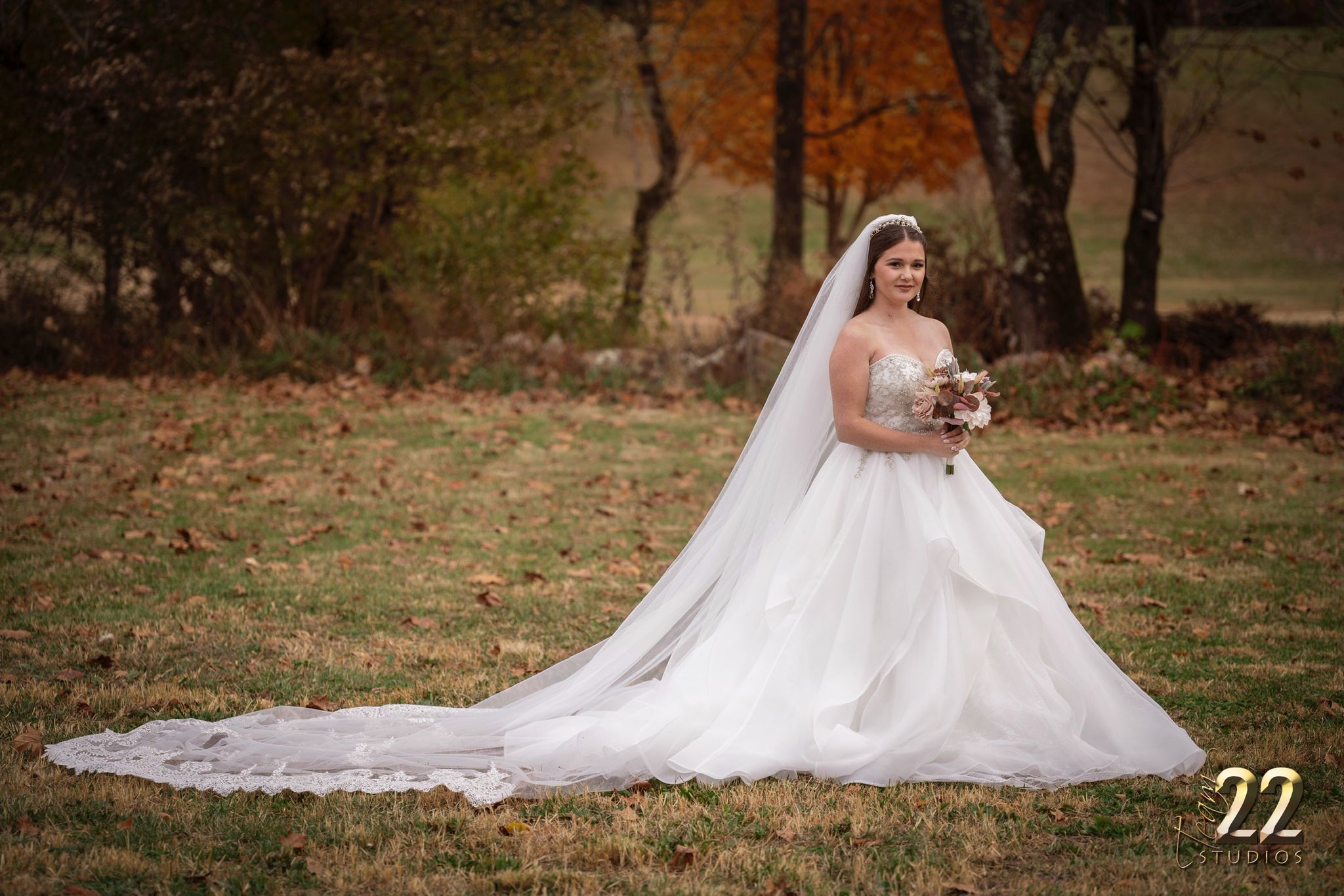 The matching veil completes the look with ethereal lightness — perfect for outdoor ceremonies, romantic photo sessions, and grand entrances.